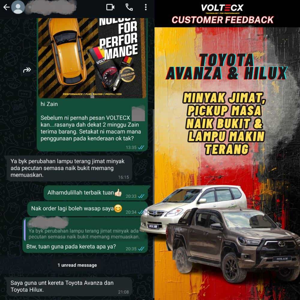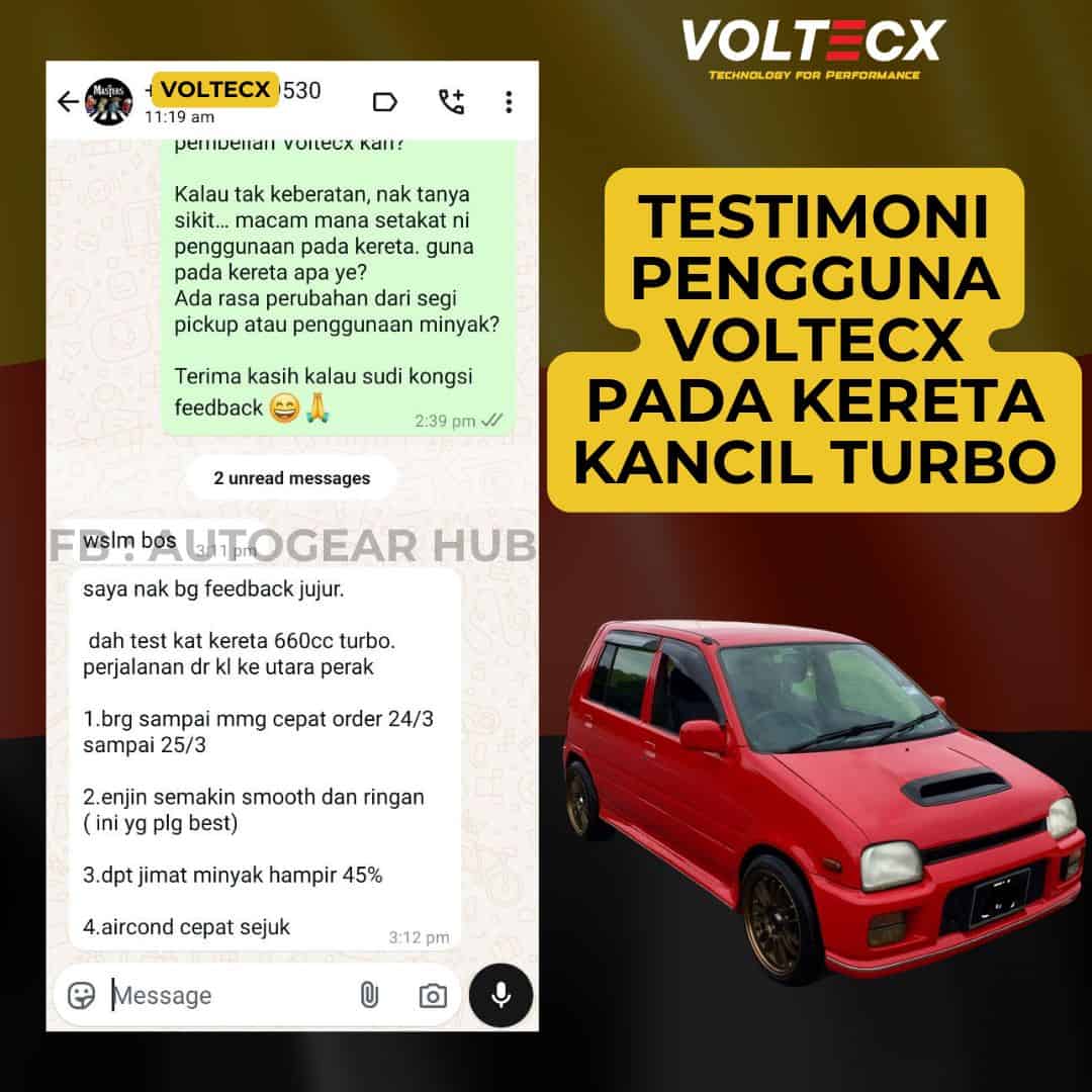 “voltecx sudah terbukti! membantu ramai pemandu kereta di malaysia meningkatkan prestasi enjin kereta mereka dan menjimatkan penggunaan minyak!