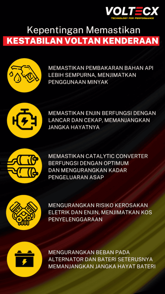 ini semua disebabkan voltage kereta dah tak stabil. Bila voltage tak stabil, pembakaran dalam enjin jadi tak sempurna. kesannya – pickup jadi lemah, minyak banyak terbakar, tapi tenaga tak sampai!