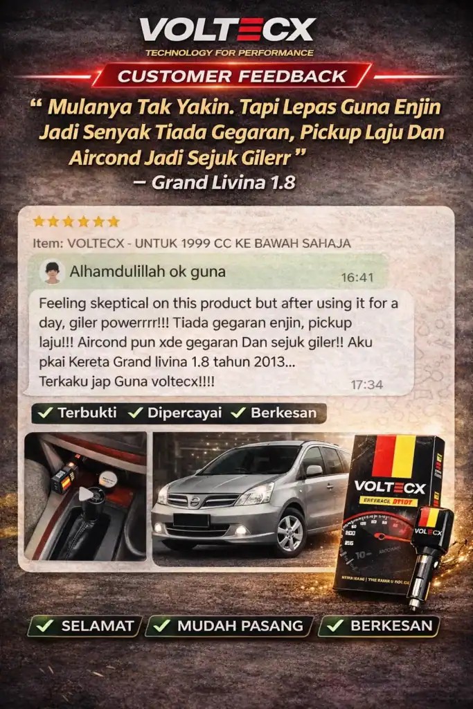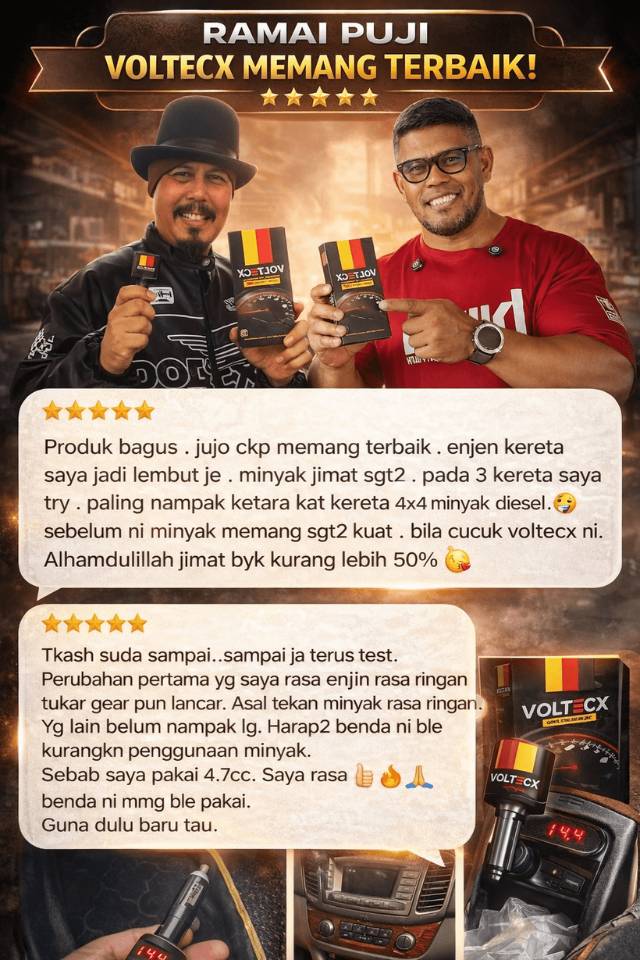 dengan jaminan warranty selama 1 tahun! VOLTECX memberi perbezaan ketara seawal 24 jam.