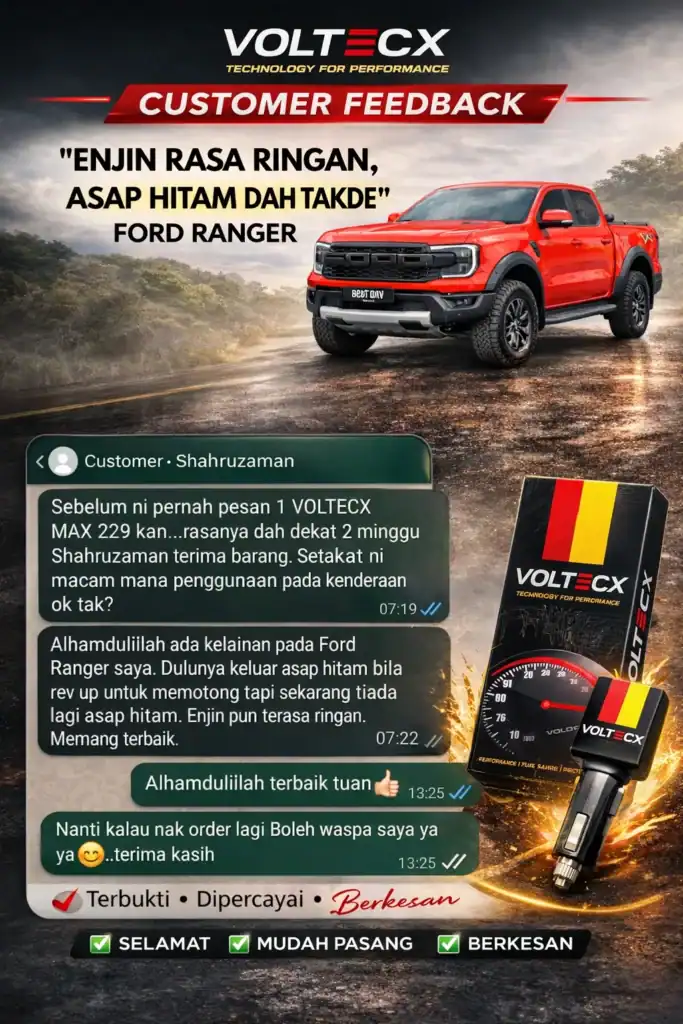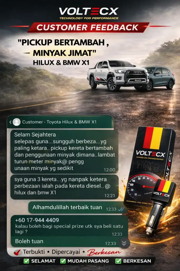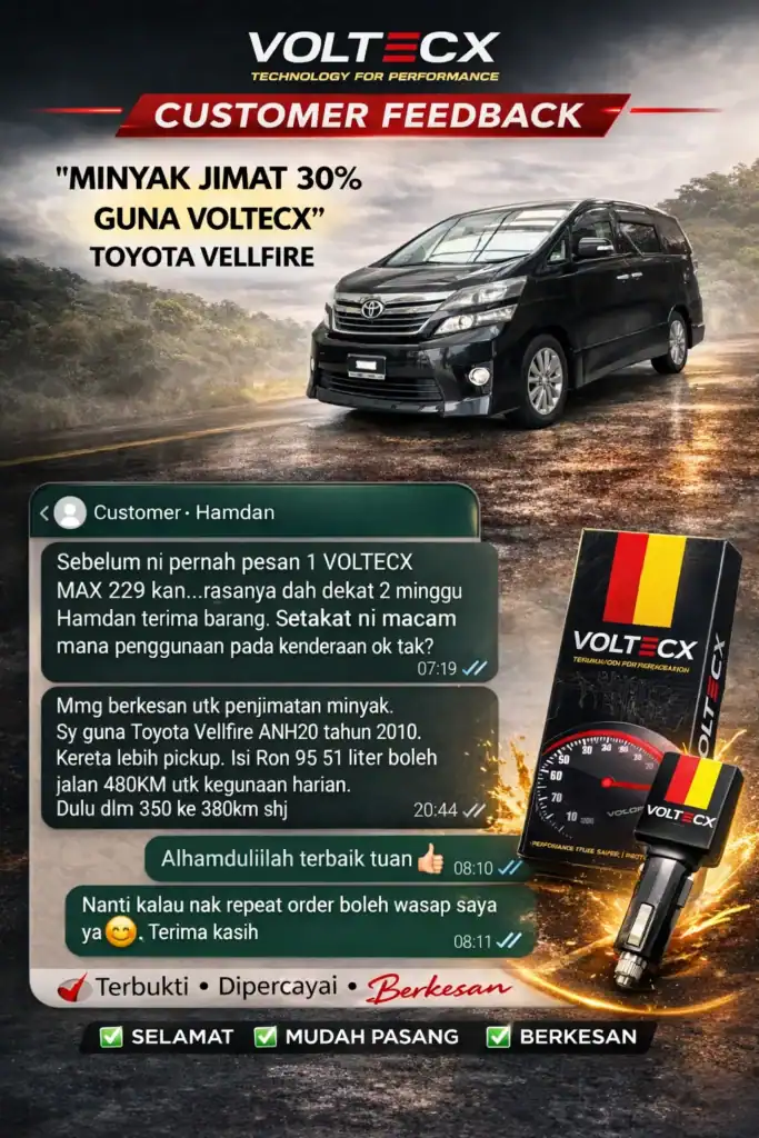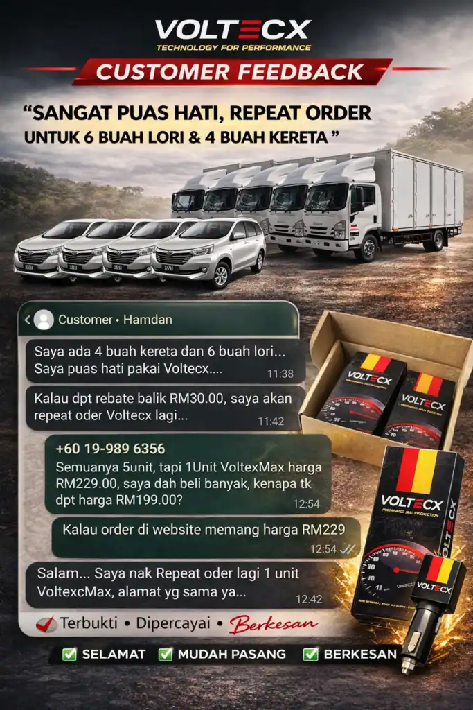 jika anda alami masalah sama seperti di atas! VOLTECX solusi yang boleh membantu anda jimatkan minyak dan pickup jadi power balik.